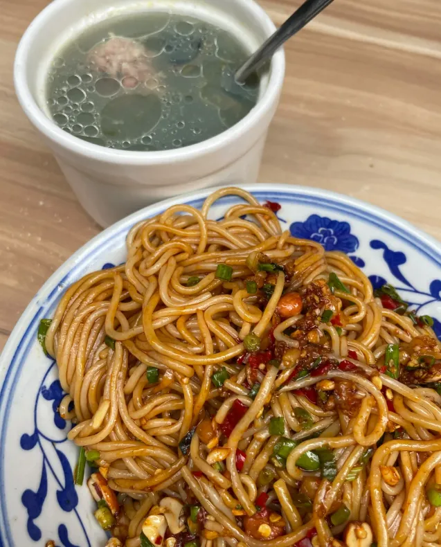 南昌拌粉:这粉做得讲究。干米粉要煮得久,煮到筷子能夹断,然后迅速过凉水,这样才劲道。沥干后,放入碗中,加剁椒、花生米、萝卜干、葱花,最后淋上一勺特制的酱油和猪油。筷子一搅,油光发亮,嗦一口,米香裹着酱香,咸辣冲鼻,人瞬间就醒了。