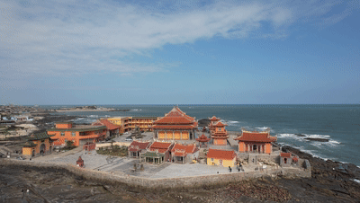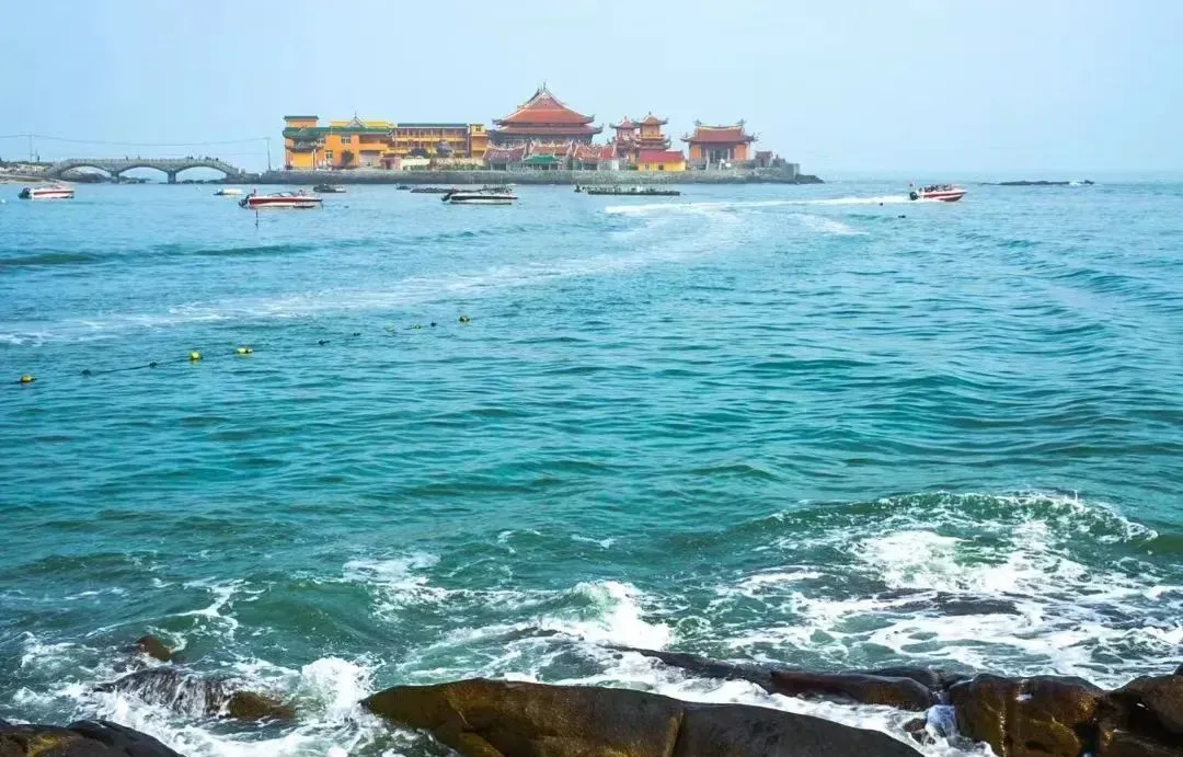 朝圣【漂浮在海上的寺庙—洛伽寺】,洛伽寺整体建筑风格简洁大方,红色的屋顶,黄色的墙壁,这种颜色的搭配让古朴的洛伽寺透着一些清新。该寺由香港友帮集团捐献二十多亩地给石狮市佛教协会作为建观音菩萨之道场,塑雕有圆通宝殿毗卢观音、善财、龙女等。游客们到了黄金海岸都会来此进上一柱香,求保平安。
