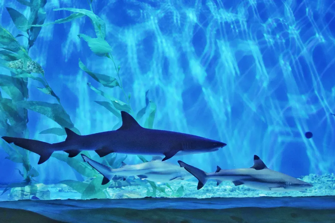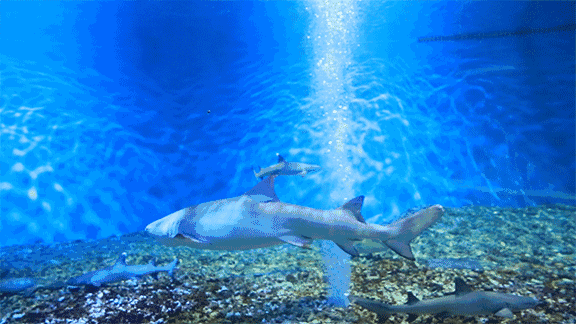 海洋霸主——鲨鱼!!!它们的家长什么样子呢?迫不及待走进造型抢眼的鲨鱼湾去瞧瞧。