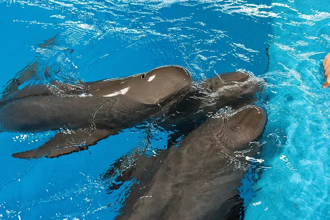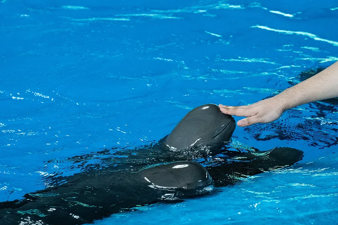 而我们在江豚馆里观赏到的,是那些被救助后,经过相关部门确认无法适应野外生存环境,而留在展馆里人工喂养的江豚。