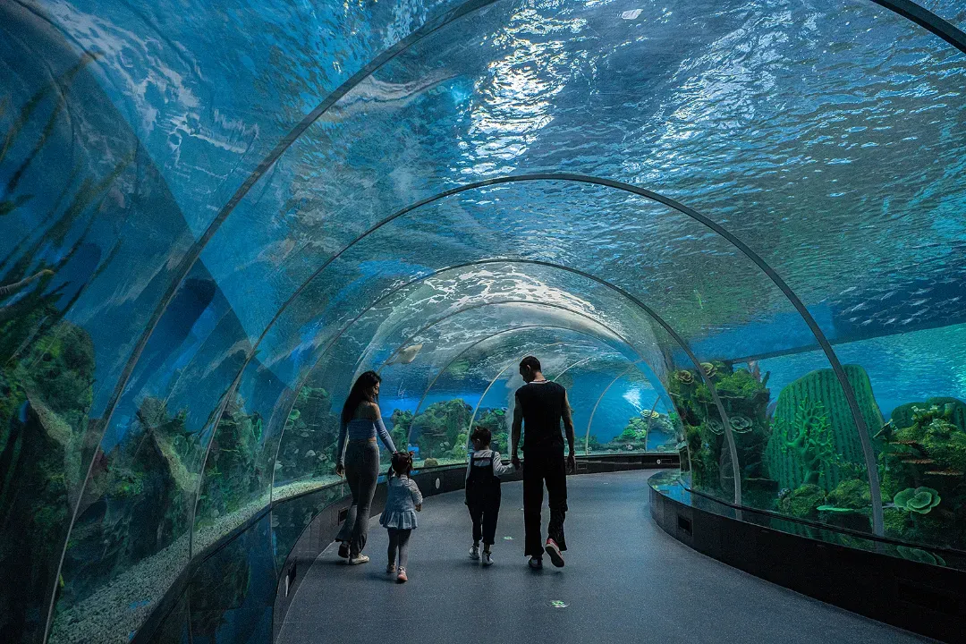 漫步隧道,置身于海底世界,感受四周水波荡漾,以潜水员的视角,全方位地观赏海底景观,不会错过任何一处美丽的风景。
