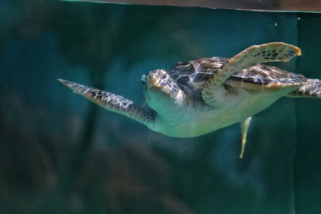 憨厚可爱的长寿海龟,在水中缓缓浮行,十分惬意。