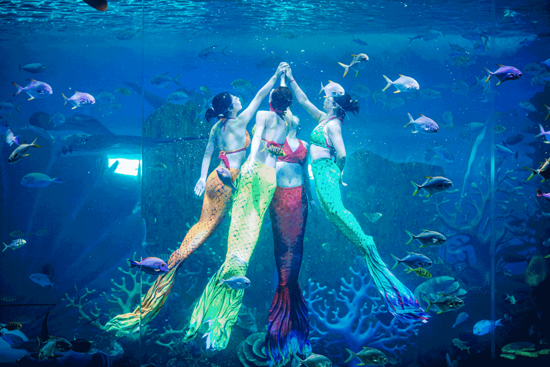 想象下四周被一大片鱼群包围的感觉!长达200米的亚克力透明海底隧道,上万条色彩缤纷的鱼类围绕在身边,仿佛传说中已经消失的亚特兰蒂斯文明遗迹重现。