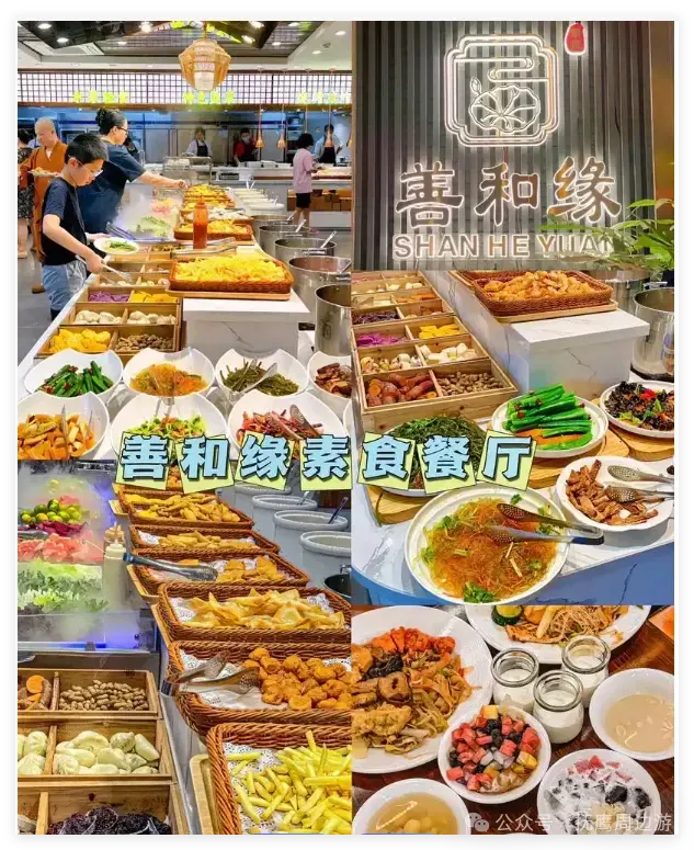 享用午餐《天荷菜根·闽南素食自助餐厅》入围2025年大众点评必吃榜,设有10大自助品类:《热菜素食》《五谷主食》《素食炸物》《热汤罐汤》《凉菜》《素食蒸笼》《甜品》《水果沙拉》《生鲜烫》《素食烧烤》,全场100多道菜品;其中,包含面线糊、地瓜粉团、炸菜粿、素海蛎煎、四果汤、花生汤等10多种传统闽南特色小吃。其中11:30-13:00有以非遗南音演出为主,随机穿插舞蹈、歌曲或乐器表演等活动(非遗表演为餐厅赠送,若碰上演员外出义演,无任何费用退还)。