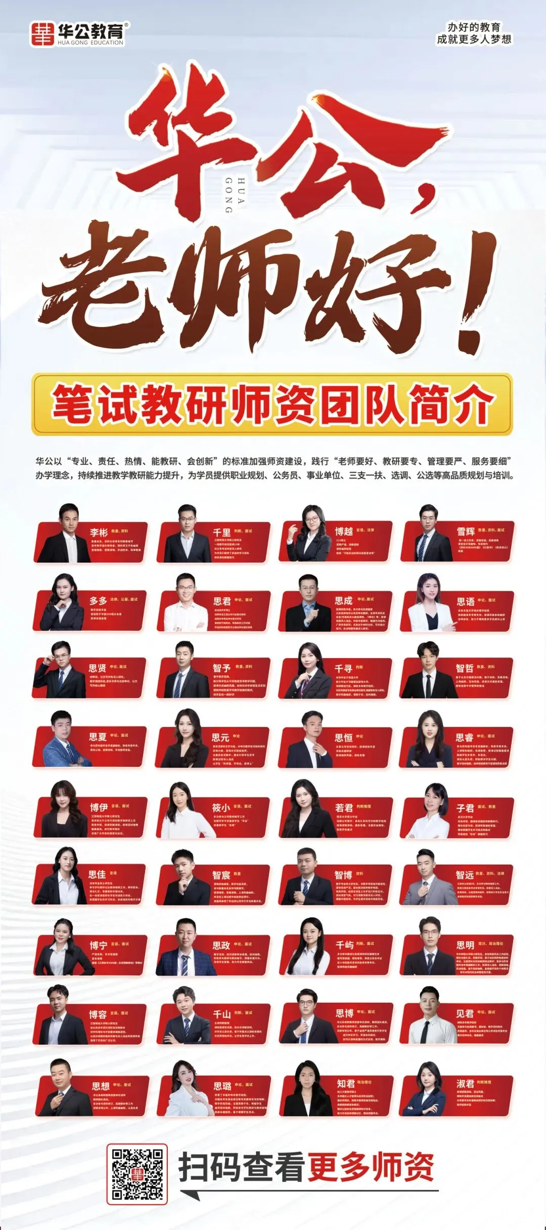 华公独立体系师资院,将全面赋能各分校开班及各类考试资料的研发,提供高质量教研教学服务。