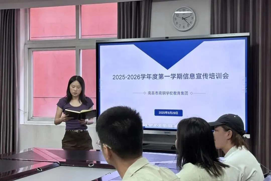 2025年8月29日,南昌市南钢学校教育集团开展2025年秋季信息宣传培训会。学校各部门负责人及信息宣传员参加本次培训。