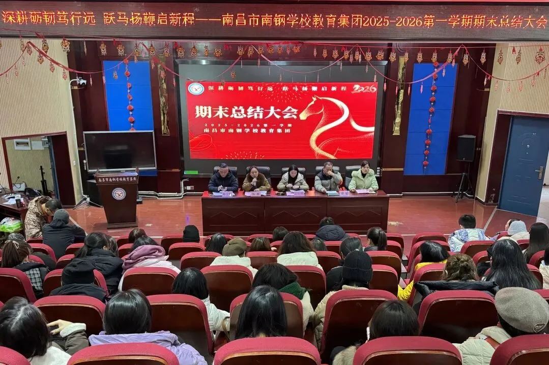 1月30日,南昌市南钢学校教育集团全体教职工齐聚一堂,召开2025-2026学年度第一学期期末总结大会。本次会议由副校长陈巍主持。