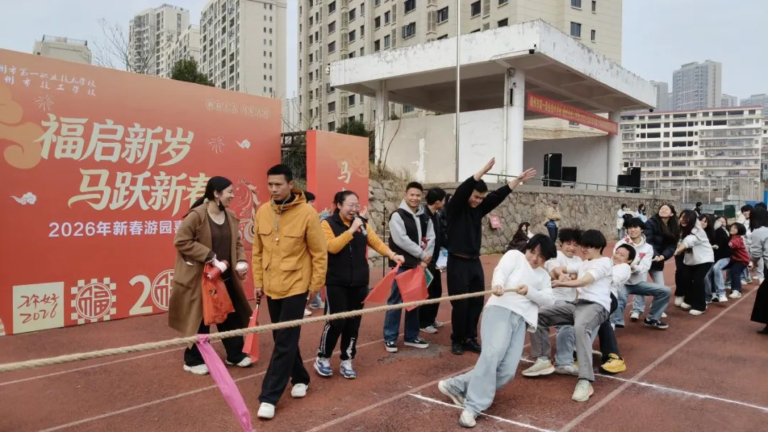 金鞍映日辞旧岁,骏马踏春启新程。1月26日,赣州市第一职业技术学校(赣州市技工学校)田径场内热闹非凡、喜气洋洋,以“福启新岁·马跃新春”为主题的新春游园喜乐会隆重举行。全校1800余名师生欢聚一堂,在丰富多彩的游戏互动与文化体验中,共迎马年新春,感受传统年味与校园温情。