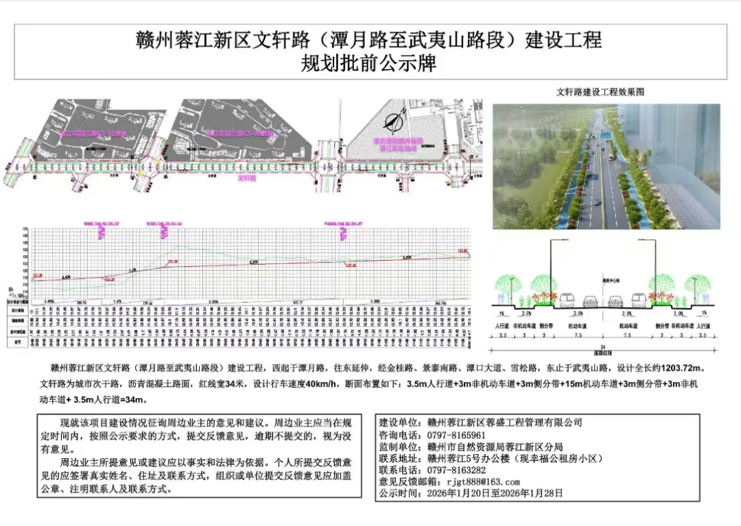 赣州蓉江新区文轩路(潭月路至武夷山路段)建设工程规划批前公示