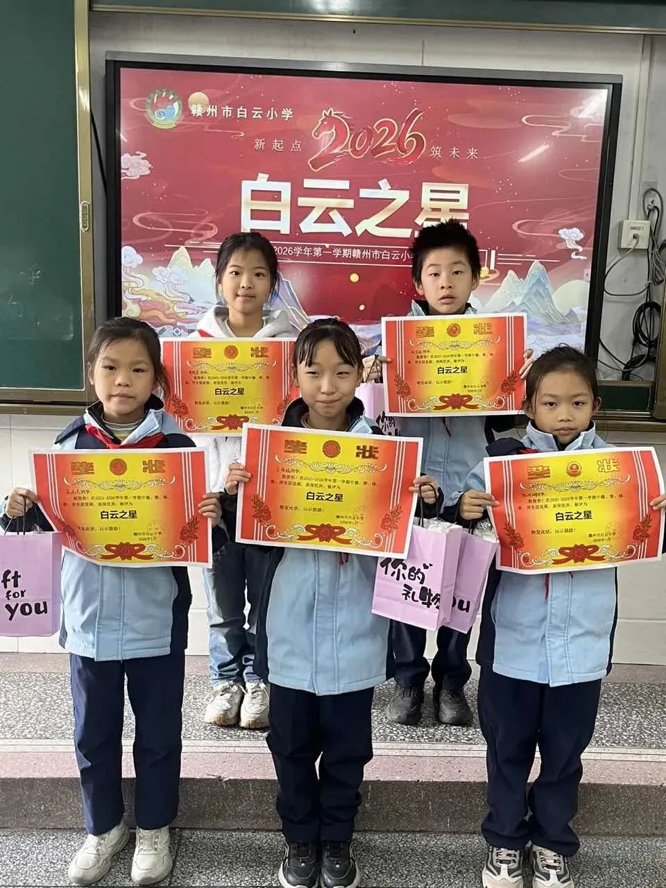 每一份努力,都值得被看见;每一份成长,都应当被铭记。学校德育副校长代表学校向辛勤耕耘的老师和无私奉献的家长志愿者们表达了感谢,对同学们取得的进步表示祝贺,还宣读了本学期各类获奖名单,在激动人心的颁奖环节,获奖同学们依次上台,从老师手中接过奖状与鼓励。一张张笑脸,一次次掌声,不仅是对过去的肯定,更是对未来的鼓舞。愿所有同学在新的一年里,如骏马奔腾,不懈向前。