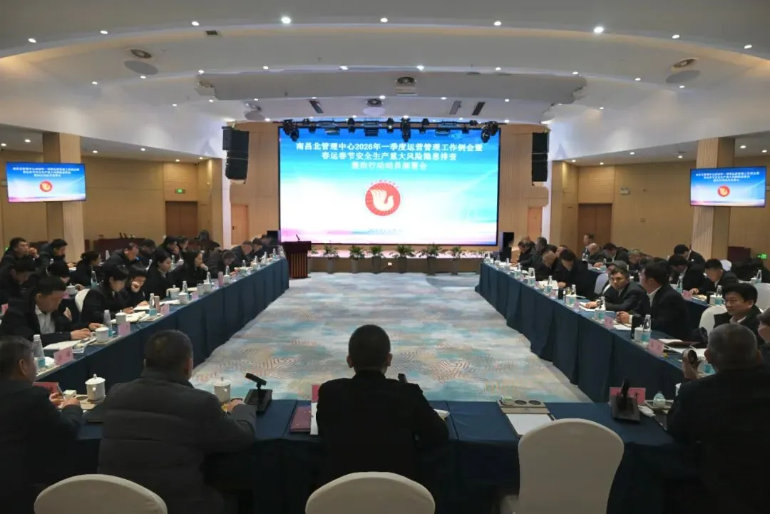 1月29日,南昌北管理中心召开2026年第一次运营管理工作例会暨春运春节安全生产重大风险隐患排查整治行动动员部署会。中心党委委员、总经理周剑光出席会议并讲话,中心在家领导出席会议并讲话,中心各部门、各单位负责同志共计60余人参加会议。