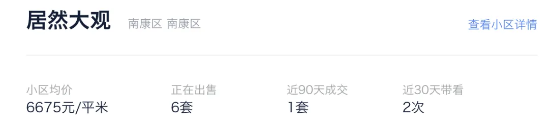 查阅平台信息可知,目前居然大观在贝壳单一平台仅有 6 套房源挂牌在售,对于一个超两千户的大体量小区来说,这个挂牌量微乎其微。