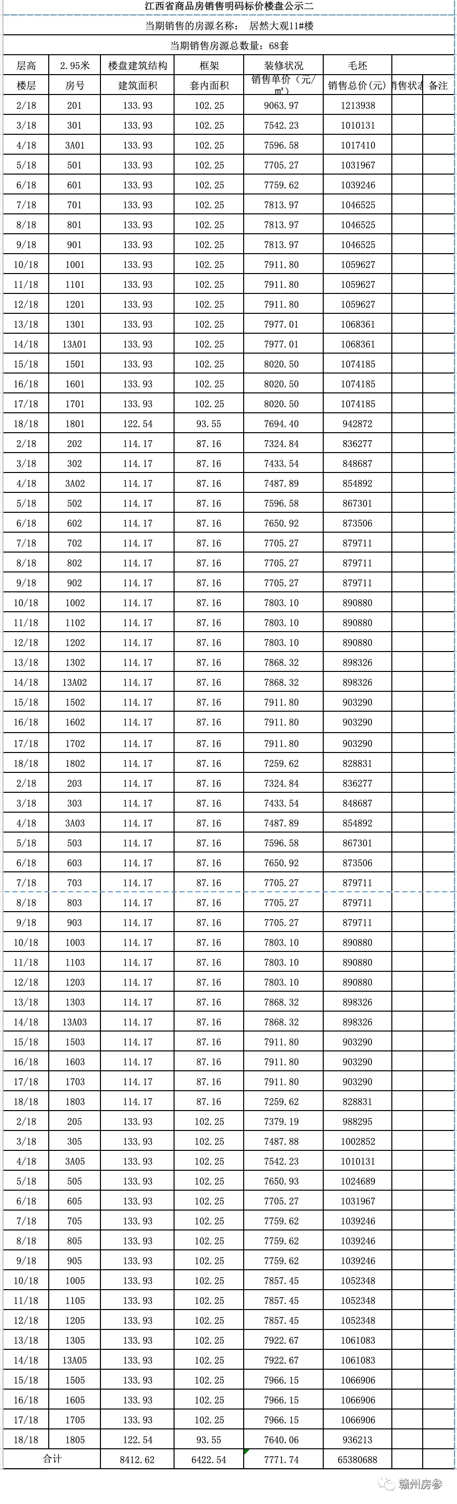 ▲ 赣州居然大观11#楼备案价