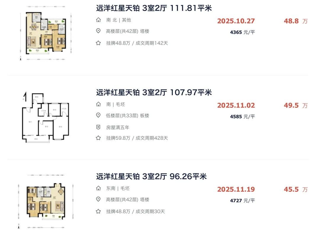 ▲ 地段配套更好的远洋红星天铂,4字头的二手成交价已是常态