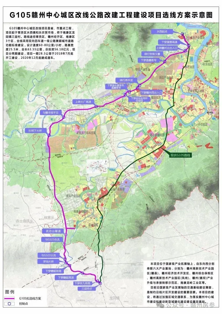 ▲ G105赣州中心城区改线公路改建工程方案示意图