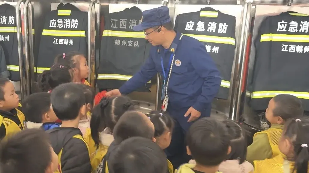 从消防头盔到灭火防护服,从空气呼吸器到消防靴,孩子们逐一认识消防员的“护身法宝”,还亲手试戴轻便的装备部件,感叹装备对消防员的重要性。