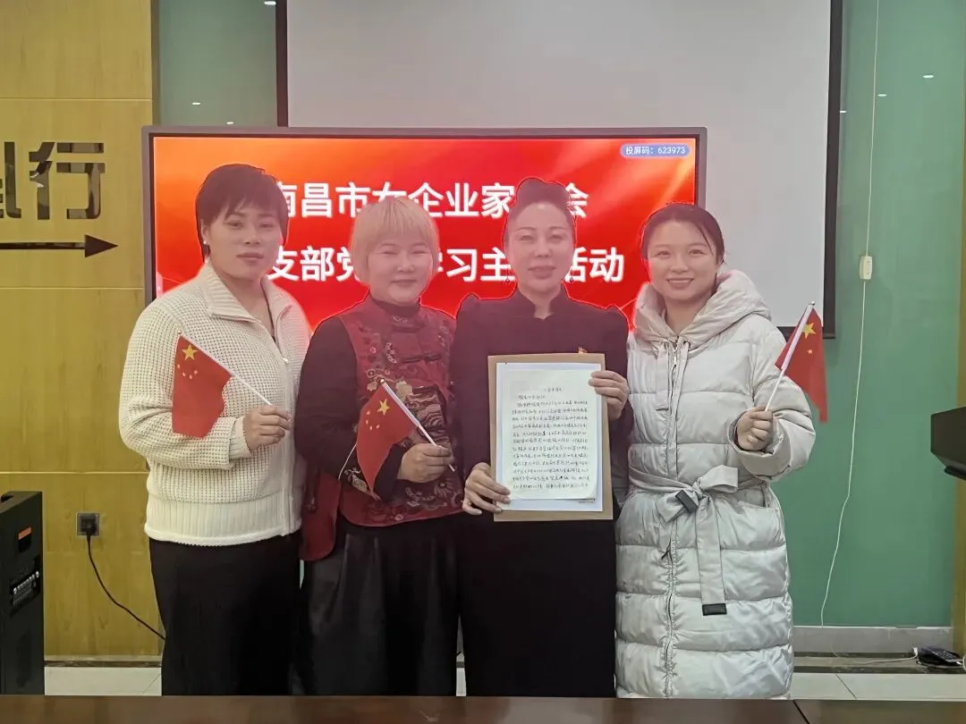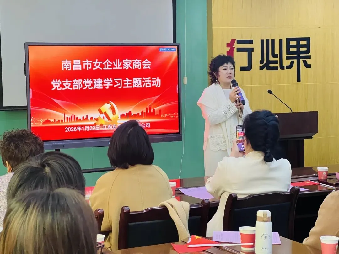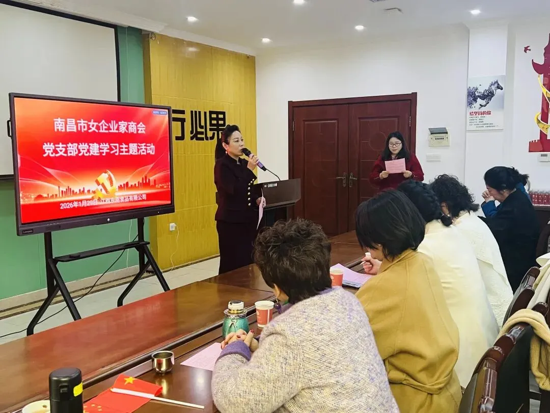 1月29日南昌市企业家商会党支部携手卓越十组姐妹共同开展“凝心聚力迎新年”主题党日活动,现场气氛热烈、人气满满。活动在党支部纪检委员吴红英的主持下拉开序幕。商会会长李异出席活动并致辞,向全体姐妹致以新年祝福,勉励大家在新征程中继续彰显巾帼担当。党支部书记田华、副书记谭雯,组织委员宋玉新分别就党建学习做了讲话。