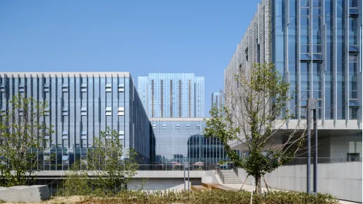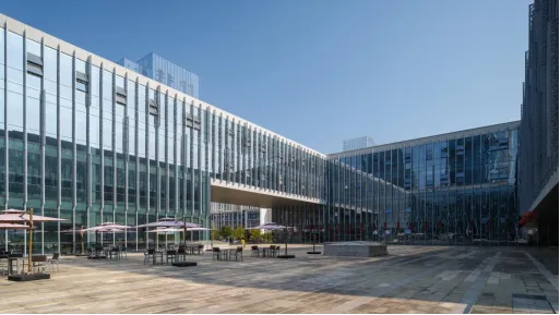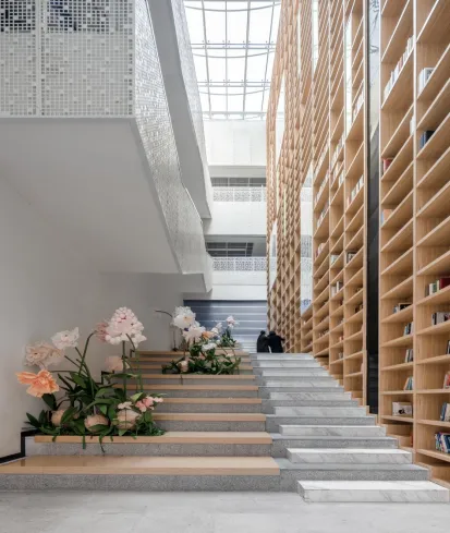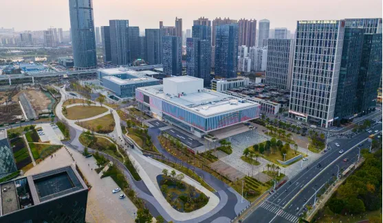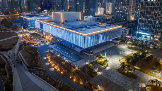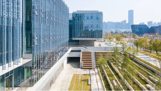 项目通过多层次、立体化的景观策略,积极推动建筑与周边城市、自然环境的深度融合。设计巧妙运用垂直绿化、地面广场、下沉庭院以及室内外渗透的庭院等一系列景观元素,编织出一个丰富立体的公共空间系统。垂直绿化软化建筑边界,广场提供大型集会与日常活动的开放平台,下沉庭院引入自然光并与地下空间联动,室内庭院则成为风雨无阻的交往核心。更重要的是,这一系统与毗邻的中央生态公园形成无缝衔接与功能互补,将公园的自然景观与生态效能引入建筑群,同时也将建筑的文化活动延伸至自然之中。由此,项目不再是封闭的文化孤岛,而是演变为一个与自然高度融合、充满生机的“文化交往枢纽”,鼓励市民在艺术、阅读与绿色自然之间自由穿梭,享受多元复合的都市文化生活。