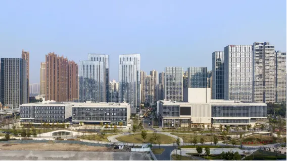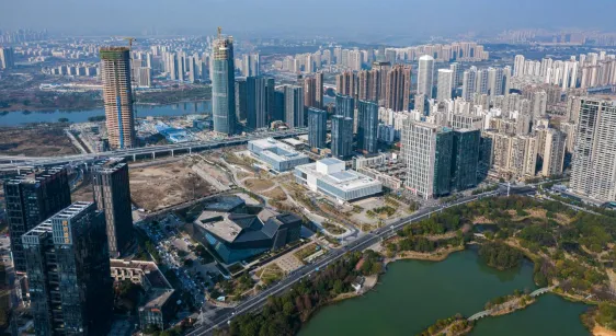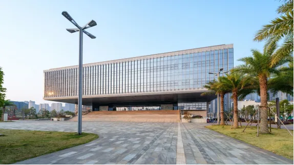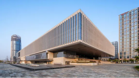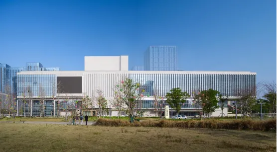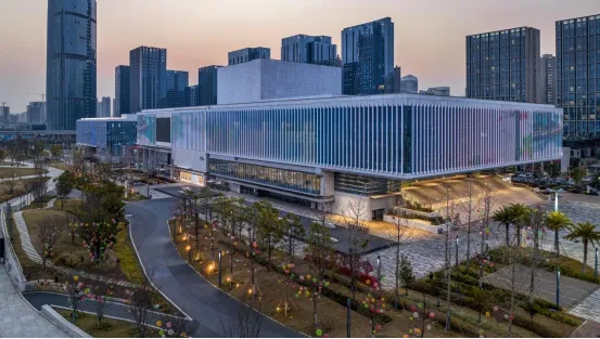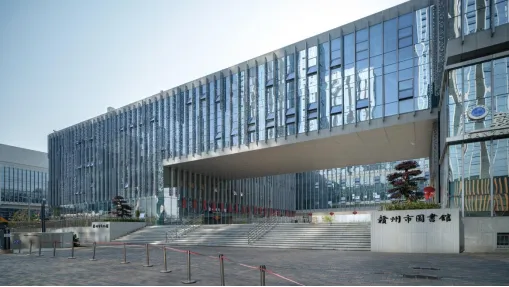 赣州市综合文化艺术馆位于江西省赣州市章江新区F27、F28地块,邻近中央生态公园西南侧,基地临赣康路、长宁路及东江源大道,项目总用地面积54130.9㎡,总建筑面积84123.84㎡,最高建筑高度(含设备高度)41m。建筑功能由大剧院(1500座)、图书馆(100万册)、群艺馆三大功能组成,集学习、阅读、艺术展示、信息交流、文化生活、休闲等功能于一体。项目于2021年1月竣工,总投资额86609.48万元。