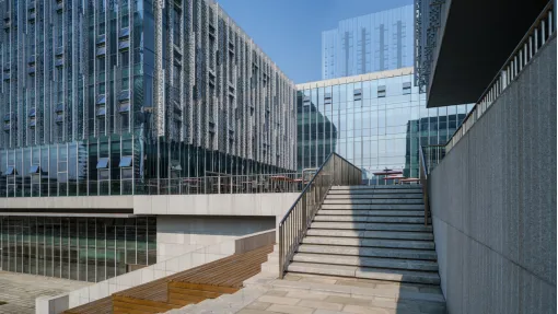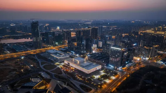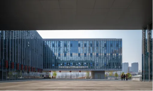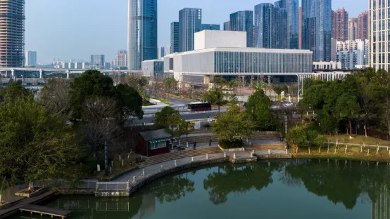 项目建筑布局的核心理念,源于对赣州母亲河——章江与贡江的抽象提炼。设计团队并未进行具象的形态模仿,而是捕捉双江汇流所蕴含的动态、融合与生生不息的精神意象,将其转化为极简的几何构图。这种流畅而有力的线条组合,不仅优雅地回应了新城区现代、规整的城市设计肌理,更创造性地将大剧院、群众艺术馆与图书馆三大功能体量有机地“搭接”与“编织”在一起。它们不再是彼此孤立的盒子,而是宛如由江水塑造的洲屿与河岸,相互依存、连贯共生,共同汇聚成一条充满活力的“文化之河”。这条“河”既是实体建筑的空间序列,也象征着知识、艺术与公众活动在此汇聚、碰撞与流淌的精神图景。建筑内部精心营造的内庭院,进一步深化了这一理念。它隐喻着客家传统中聚族而居、围屋共生的生活智慧与空间原型,将家族内部的共享庭院,转化为现代市民可自由进入、休憩交往的公共文化客厅。这使得整个建筑群超越了单纯的功能容器,升华为一个承载集体记忆、促进社区凝聚、激发文化创新的生动场所。