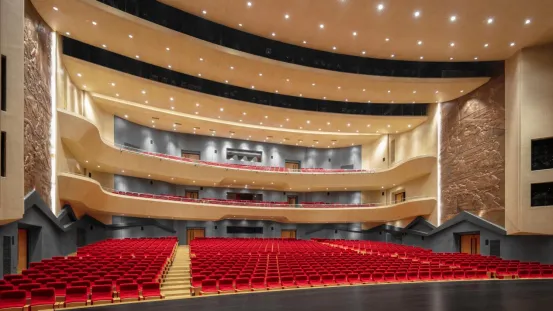 在追求标志性奇异造型蔚然成风的时代,本项目秉持了一种冷静而自信的设计哲学:摒弃高调张扬的自我表达,转而采用简约、精准、克制的设计手法。建筑的整体形态通过精炼的体块操作与清晰的逻辑构成,将大剧院、艺术馆、图书馆内部复杂各异的大空间需求与流线功能,无缝整合为一个完整、统一且有标志性的建筑形象。它不试图以突兀的形态主宰城市天际线,而是追求与城市街道、广场及周边建筑尺度达成和谐对话,从而高度融入城市空间结构。这种“融入”并非平庸,而是通过比例、材质、细节的极致推敲,展现一种高雅、经典、历经时间考验的建筑气质。它安静地传达其作为公共文化设施应有的庄重、开放与包容,让建筑的使用性质和内在文化精神通过自身的形态完整性与空间品质得以自然彰显,而非依赖视觉奇观。