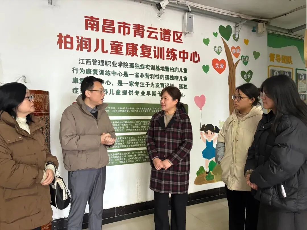 学院一行先后走访了南昌市扶摇儿童能力成长中心、江西长天医养中心、南昌市青云谱区柏润儿童康复训练中心三家单位,实地参观了各机构个训室、集体教室等核心基础设施,细致了解其空间布局规划、专业设备配置、特色课程体系及整体运营模式等情况。