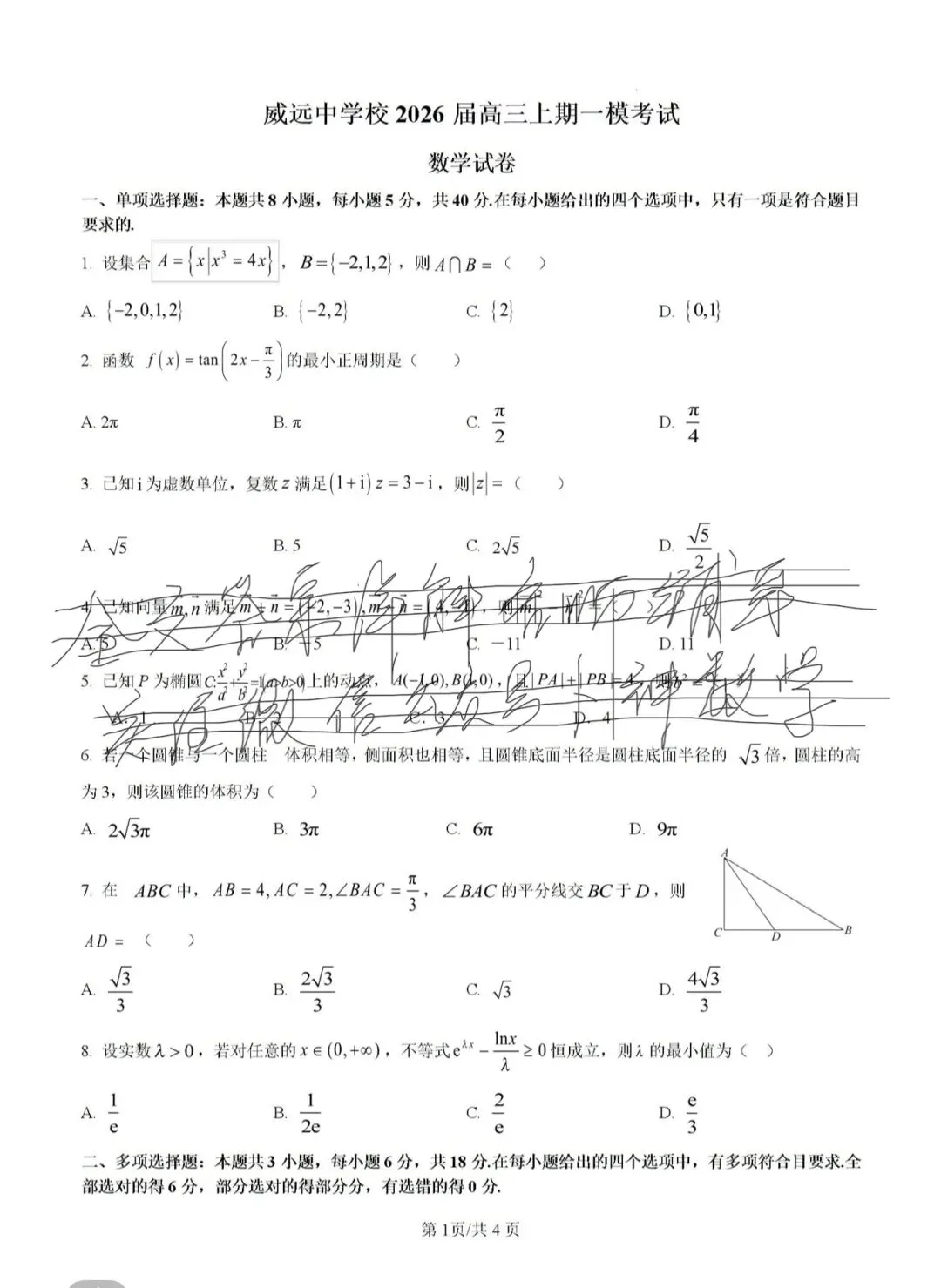 四川省内江市威远中学校2026届高三上学期一模考试数学试卷
