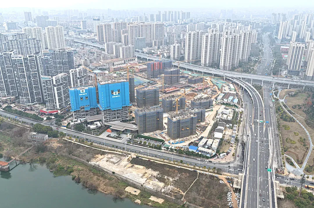 除了首栋住宅封顶外,目前章江上境大部分的住宅已经同步在施工,现场施工热火朝天。从航拍画面可以看到,首开的几栋高层住宅进度已过半,相信今年上半年还将有更多楼栋陆续迎来封顶。