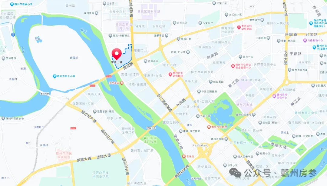 配套上,章江上境与 E 地块"滨江 F4"仅一路之隔。小区隔壁是金星小学和经开区保育院,旁边还有锦晖广场购物中心、赣州市第十二中学,距离万达广场、赣州市妇幼保健院也不远。