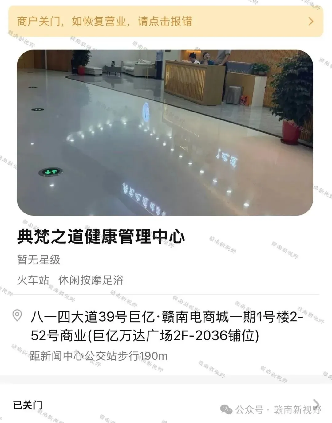 收到您在《问政赣州》栏目上反映“章贡区巨亿万达典梵健康管理中心突然闭店不退款”问题的意见,我局进行了调查。现就调查核实和处置情况复函如下: