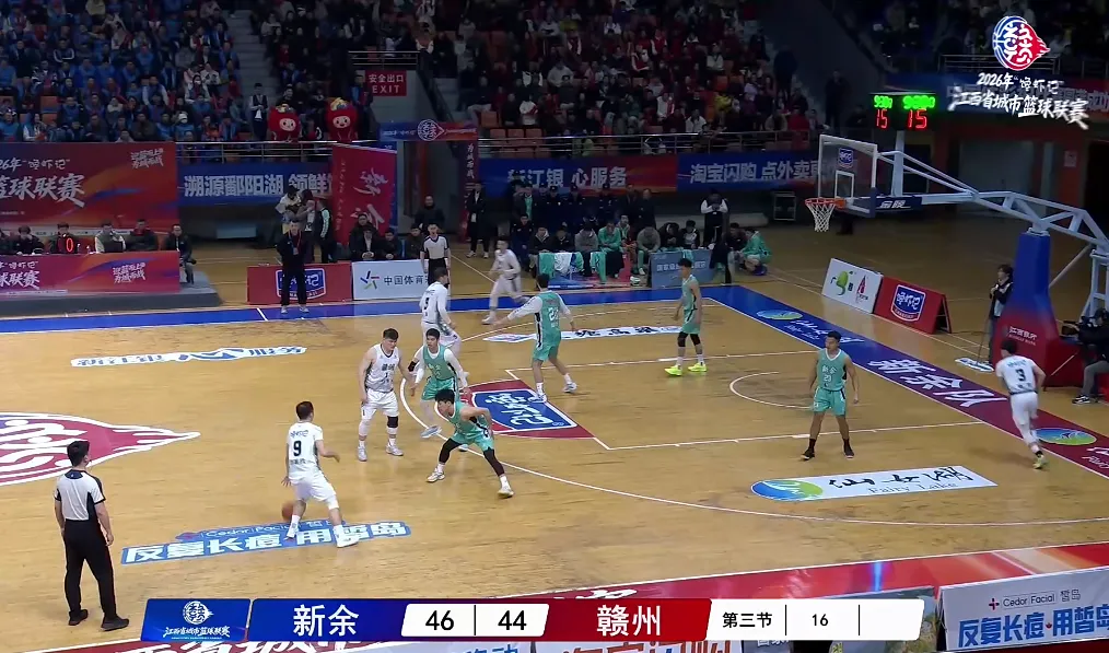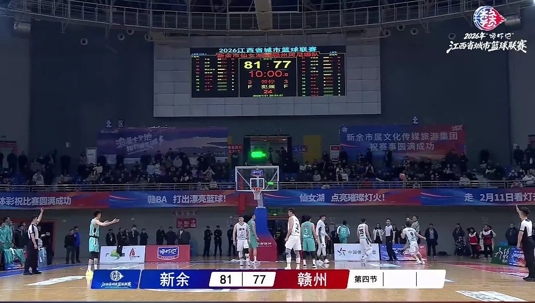 下半场两队拼抢更加激烈,战至最后一分多钟连续出现平分。关键时刻新余市队凭借良好的手感以及一记超远三分将比分反超并取得优势。