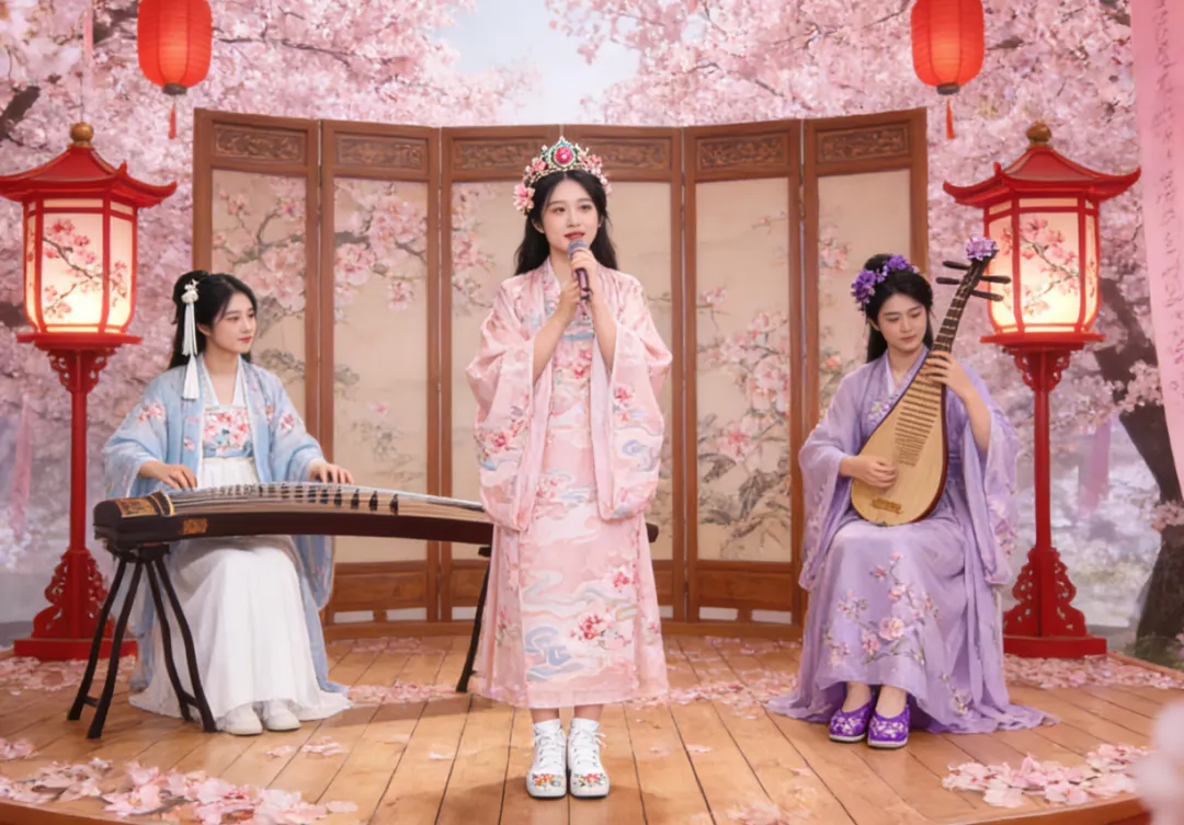 筝声流淌过花瓣,春风都忍不住驻足
