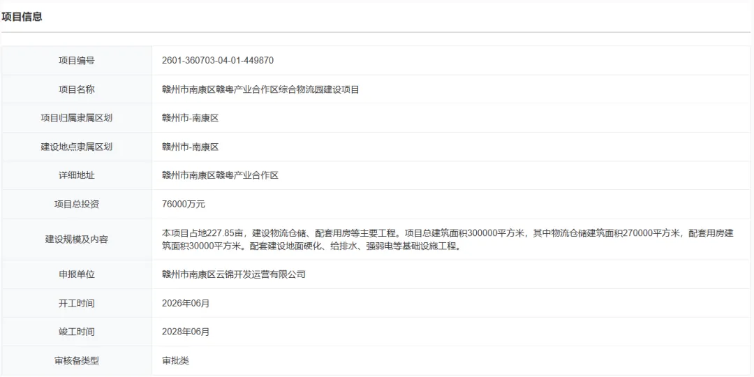 总投资76000万!南康区赣粤产业合作区综合物流园建设项目信息发布,一起来看看具体情况。