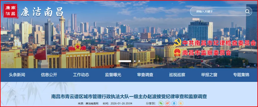 >南昌市青云谱区城市管理行政执法大队一级主办赵波,被查