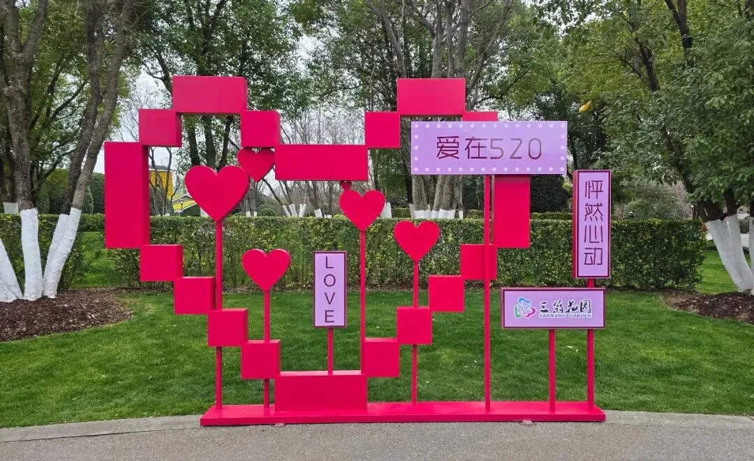 园内新增打造“玉茗花” “与风与你” “爱在520”等多个网红打卡点,花艺相框定格美好,枫叶座椅邂逅浪漫,随手一拍都是氛围感大片。