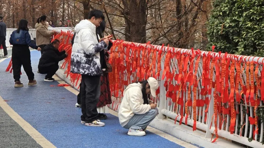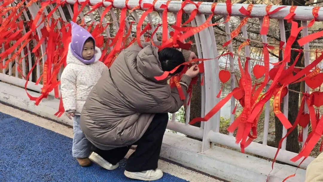 新春祈福,岁岁安康。彩虹一桥处,笔墨祈福牌已备好,写下新年心愿悬挂桥上,让繁花见证美好期许。