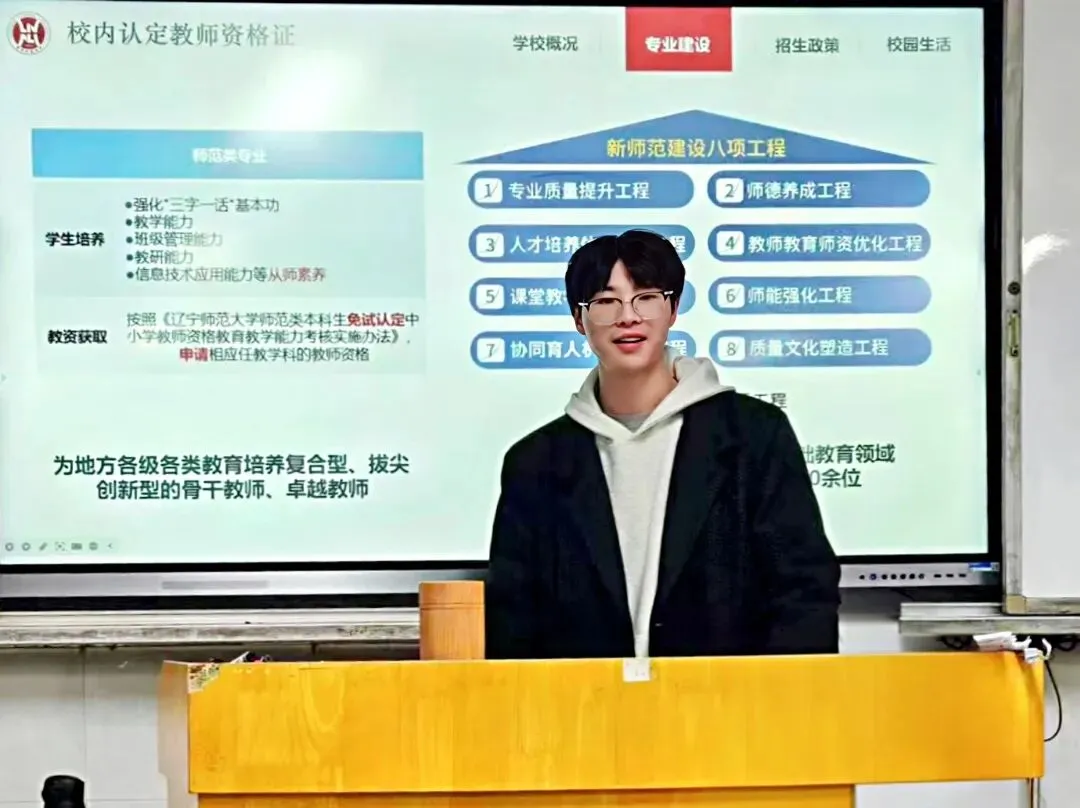 宣讲过程中,我深入解读辽师“厚德博学,为人师表”的校训内涵,分享学校师长潜心育人、学长学姐践行教育理想的故事,希望能让他们感受到辽师的育人温度与责任担当。