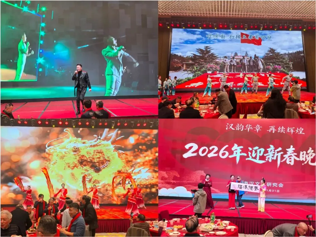 开场由圆梦艺术团带来的采茶歌舞《闹春》瞬间点燃了全场喜庆氛围,随后,采茶戏《姑嫂上山》、《刘二上路》、汉装秀《重回汉唐》、情景剧《大风歌》、《做人要懂得感恩》、情景歌舞《哥哥出门当红军》以及诗朗诵、萨克斯合奏、男女声独唱等精彩节目轮番上阵、先后上演,熟悉的旋律、高亢的歌声、优美的舞姿唤起全场情感共鸣,不断将晚会氛围推向高潮。 其中,兴国县汉文化研究会为晚会精心选送了两个特色节目黄梅戏《夫妻双双把家还》、山歌《顺从天意多添丁》,呈现出十分鲜明生动的艺术风格,浓郁感人的生活气息和独特深厚的地域文化风采。 整台晚会紧扣汉文化特色与时代脉搏,全方位展现出新岁策马扬鞭、勇毅前行的豪情壮志,赢得满堂喝彩。晚会持续近三个小时,最后在气势恢宏的舞蹈《龙吟九州》中圆满落幕。该舞蹈以龙为魂、以舞为形,生动演绎了中华文明生生不息的精神气象,也寓意着汉文化在新时代的腾飞与振兴。 汉韵悠长,华章再续。2026年,赣州各区县汉文化研究会将在赣州市汉文化研究会的指导下,继续坚守初心,深挖本土资源,守正创新,为文化强国建设贡献更多力量,让汉文化之花在赣州大地永绽光芒。
