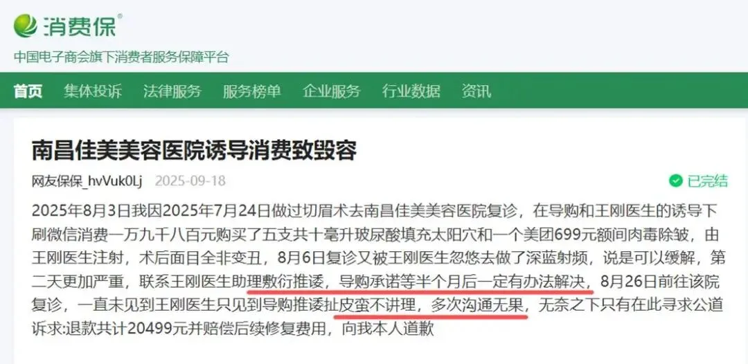 消费保平台同样收到了不少关于南昌佳美医美的控诉。