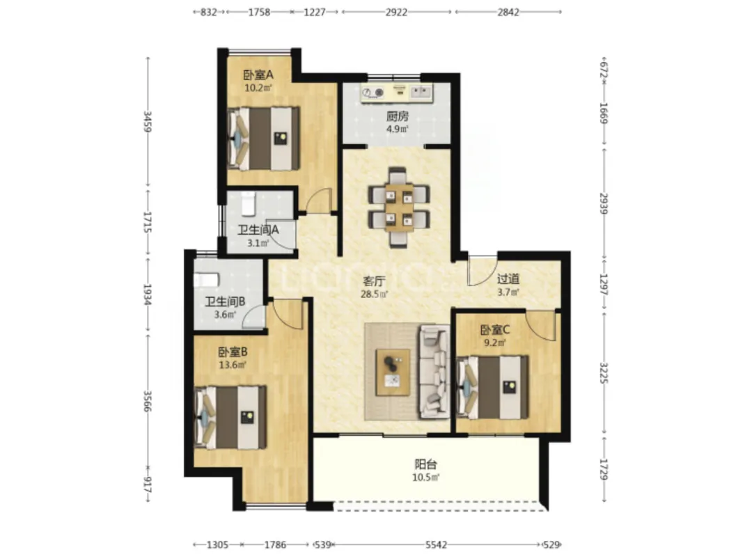 ▲ 赣州居然大观首套成交的房源,老规户型,113㎡才做三房,布局也很一般