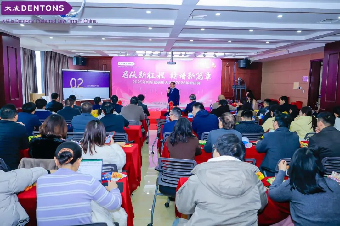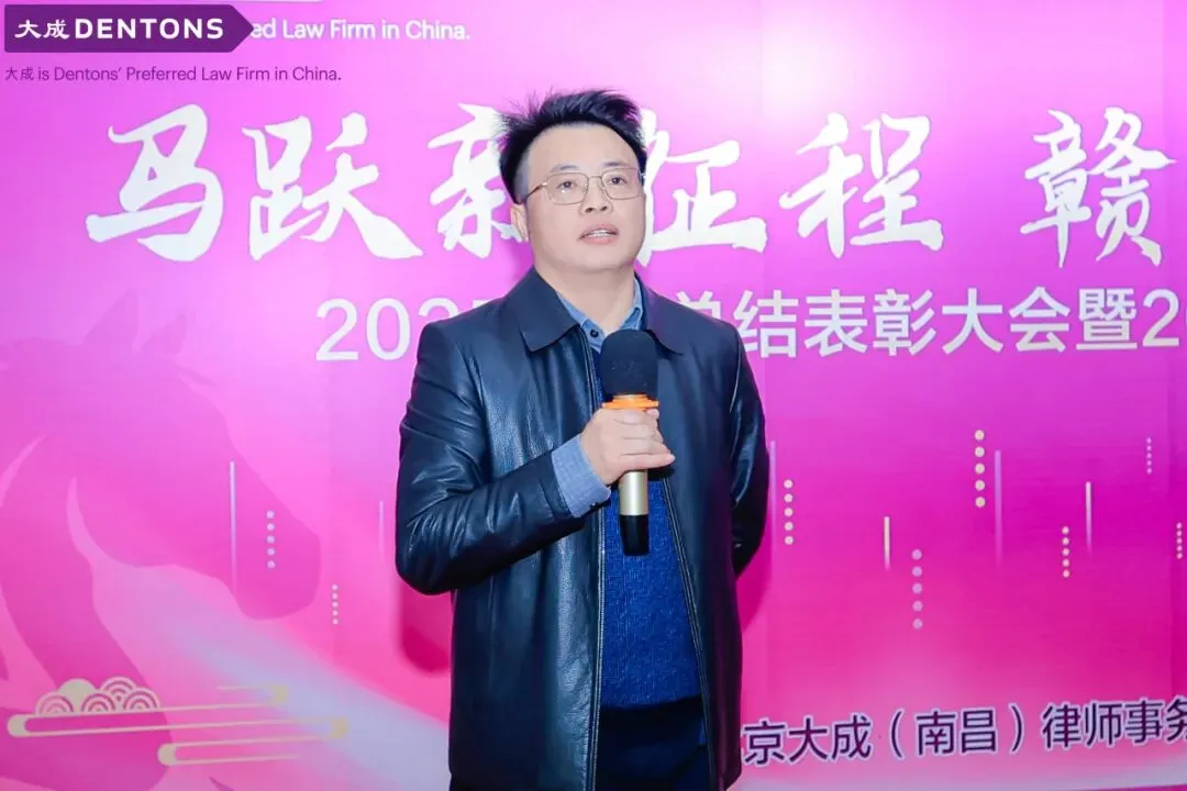 1、熊主任作2025年律所工作总结报告及2026年度工作目标展望,他首先汇报了律所2025年的律所队伍建设、案件数量、业绩创收、文体建设、公益事业、参政议政等精彩亮点回顾,对于经济下行、行业内卷的严峻挑战,赞扬了大成南昌分所2025年逆势而上:队伍规模持续壮大,案件总量稳中有质,全所营收稳中有升!党建引领铸魂,参政议政彰显担当,品牌影响力节节攀升!