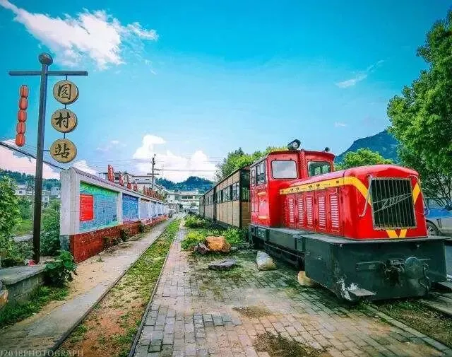 8、14:00 参观小火车拍照留念,然后乘坐小火车(来回约四十分钟),沿途风光旖旎。远处青山、近处村庄、田野一一从眼前慢慢掠过,彼时彼刻,因现代社会快节奏产生的焦虑和不安突然就荡然无存了。