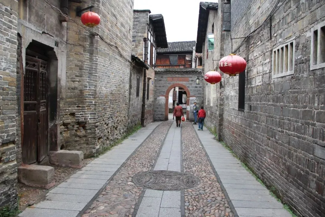 鹅卵石路面井然光洁,风火山墙错落有致