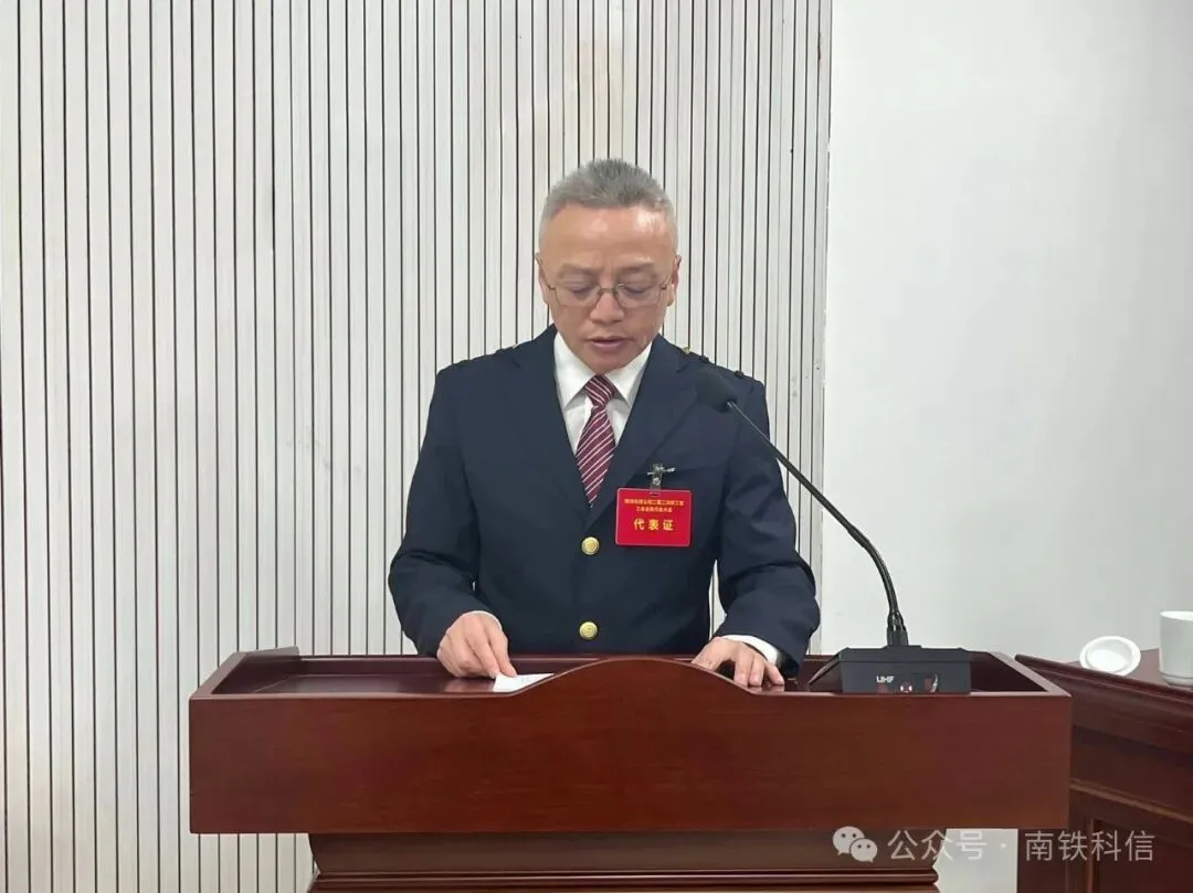 报告强调,按照集团公司工作总体部署,统筹考虑实际,南铁科信公司2025年工作的总体目标是坚持以习近平新时代中国特色社会主义思想为指导,全面贯彻党的二十大和二十届二中、三中全会精神以及中央经济工作会议精神,深入学习贯彻习近平总书记对铁路工作的重要指示批示精神,贯彻落实国铁集团、集团公司决策部署,坚持稳中求进工作总基调,完整准确全面贯彻新发展理念,聚焦深化“六个现代化体系”, 持续深化“对标找差、奋勇争先”工作主线,大力发扬“忠诚担当、实干争先”的南铁精神,锚定公司安全经营目标,驱动主营维保业务与科技创新业务“双轮”并进,奋力推动公司高质量发展,在集团公司强局建设晋位提升中展示南铁科信公司新作为。