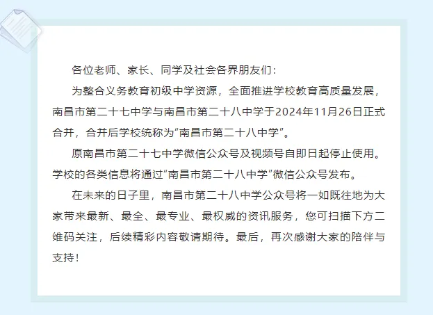 南昌市第二十七中学微信公众号