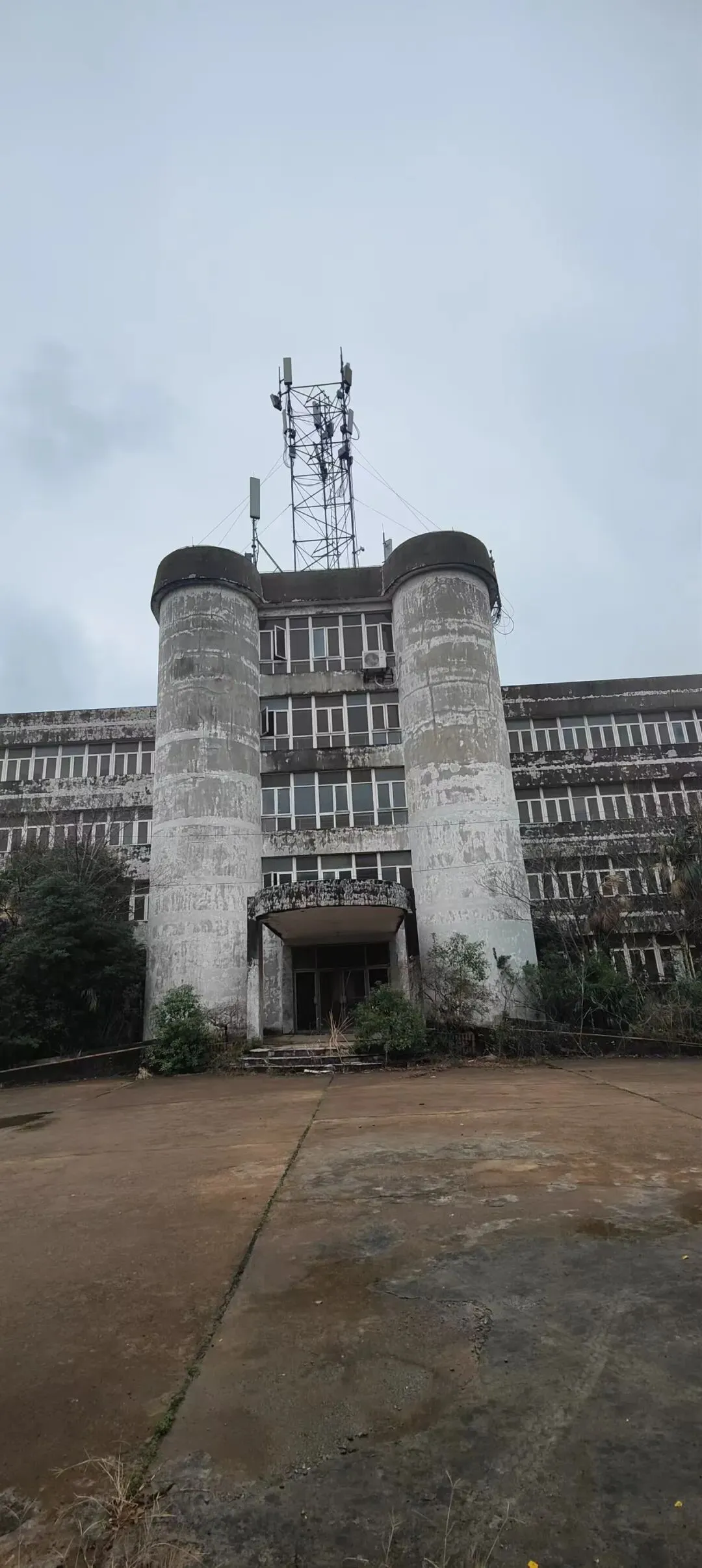 厂牌褪色的金字、弧形瞭望台落满尘埃的斑驳办公大楼、“爱岗敬业”的残缺宣传栏,高高耸立的避雷塔 …