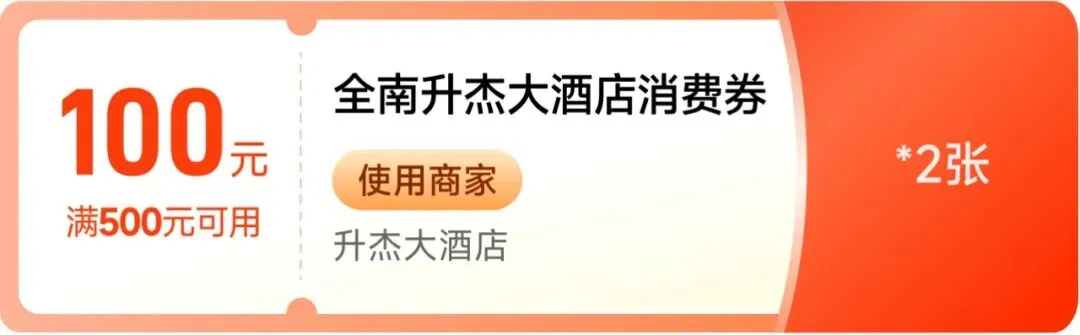 1.全南升杰大酒店消费券:活动期间每人限领取2张满500元减100元的消费券,最高可享受满1000元立减200元优惠。