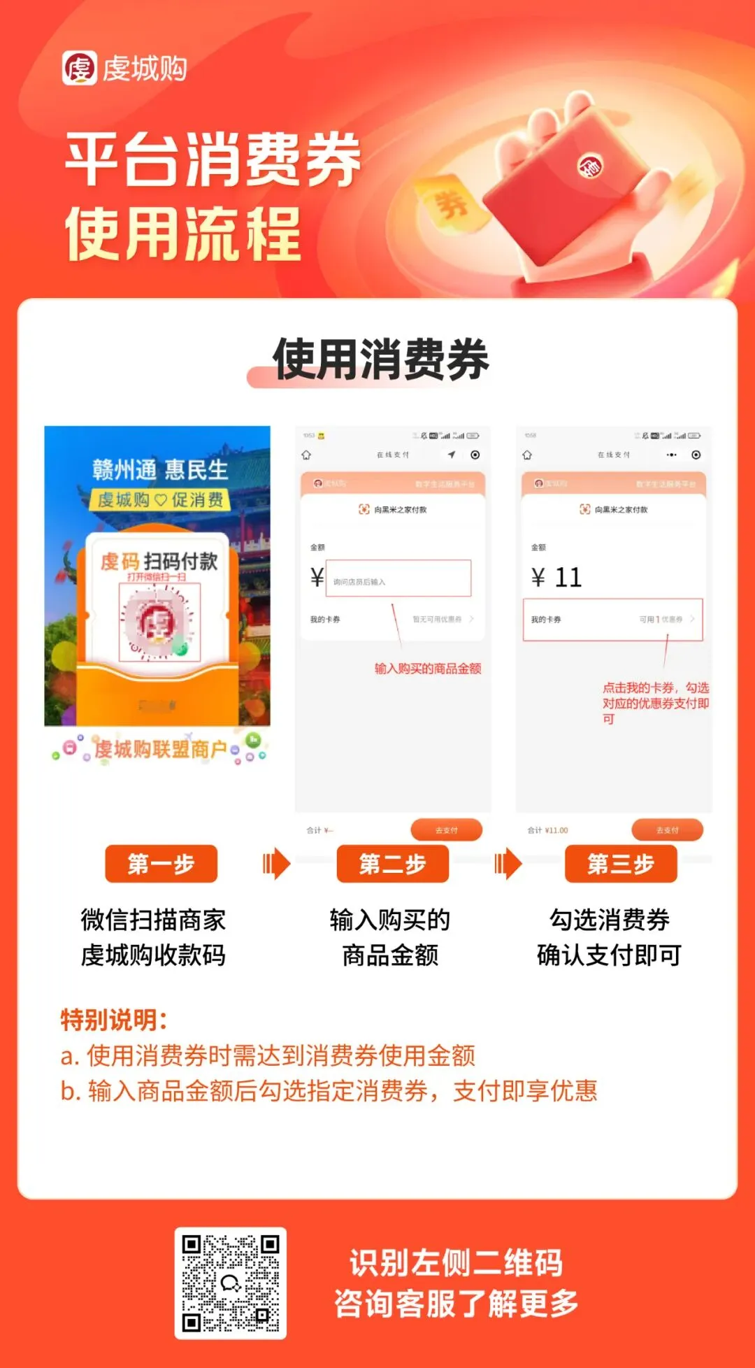 2.申领及使用:消费者到达全南县农产品电商运营中心现场扫码领券和使用,每人仅限领取一次。