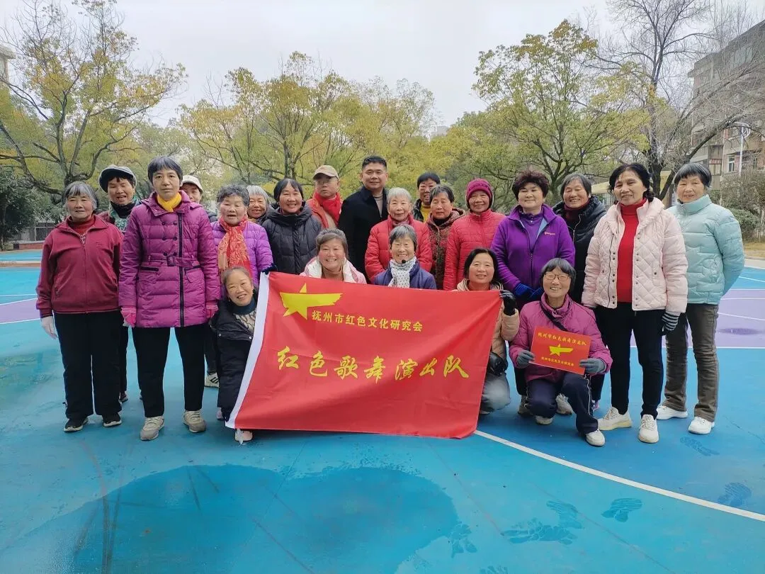 2026年2月1日,抚州市红色文化研究会在公园社区广场隆重举行红星闪闪艺术团授旗仪式,抚州富奇“多彩金秋”晨练队凭借精湛的广场红歌表演艺术脱颖而出,正式加盟艺术团,成为抚州红色文化基层传播的新生力量。