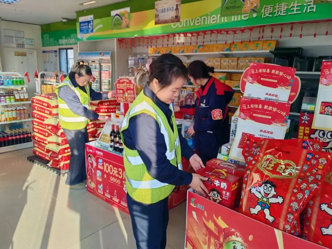 紧抓易捷年货节契机,积极营造销售氛围。各站强化现场培训与开口营销,在加油、进店等环节主动推介“新春易起购,红包码不停”等活动。便利店精心设置“百元三件”“年货专区”主题堆头,重点陈列坚果、酒水、粮油等年货商品,有效拉动门店销售额增长。